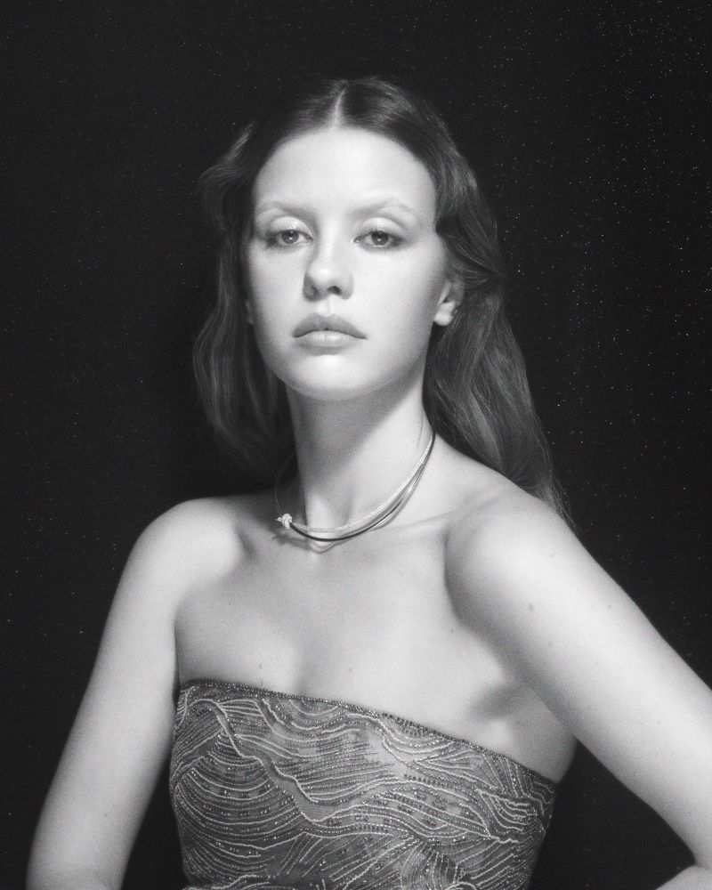 El trabajo de un modelo es ser un camaleón. Mia Goth lo logra a través de su mirada, su lenguaje corporal y su interacción con el entorno.